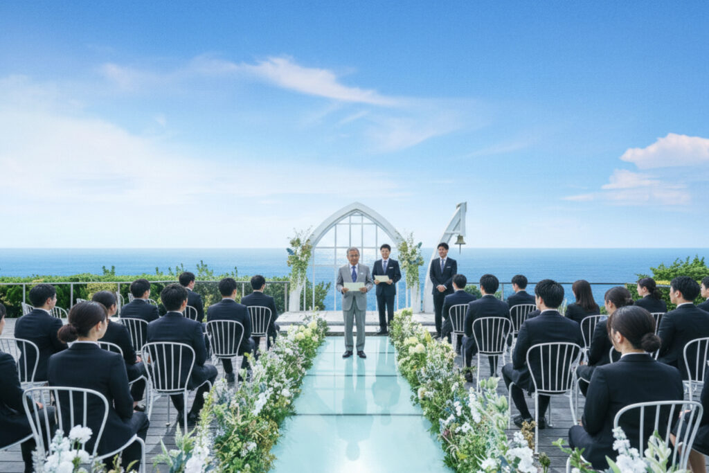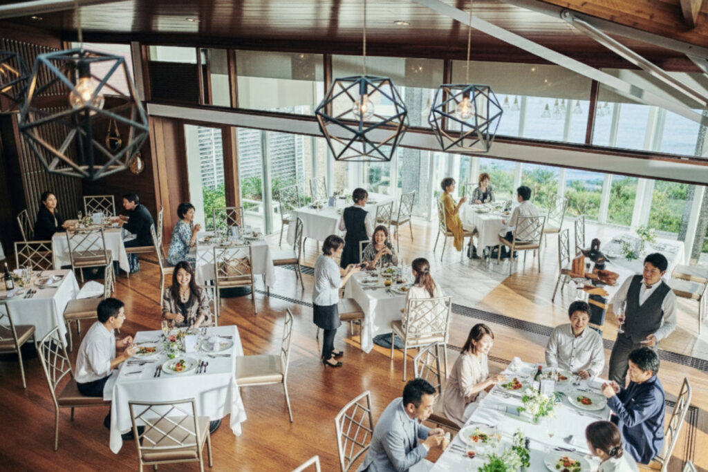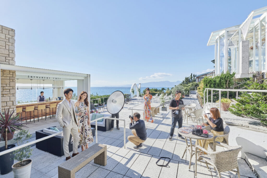 敷地内どこにいても水平線を見晴らせる「指帆亭」。開放感あるチャペル・テラス・バンケットは、映画やテレビ番組、雑誌などの撮影ロケ地に