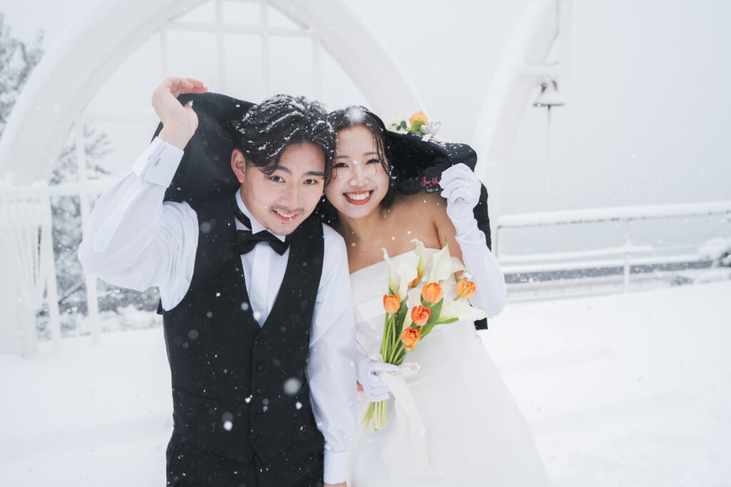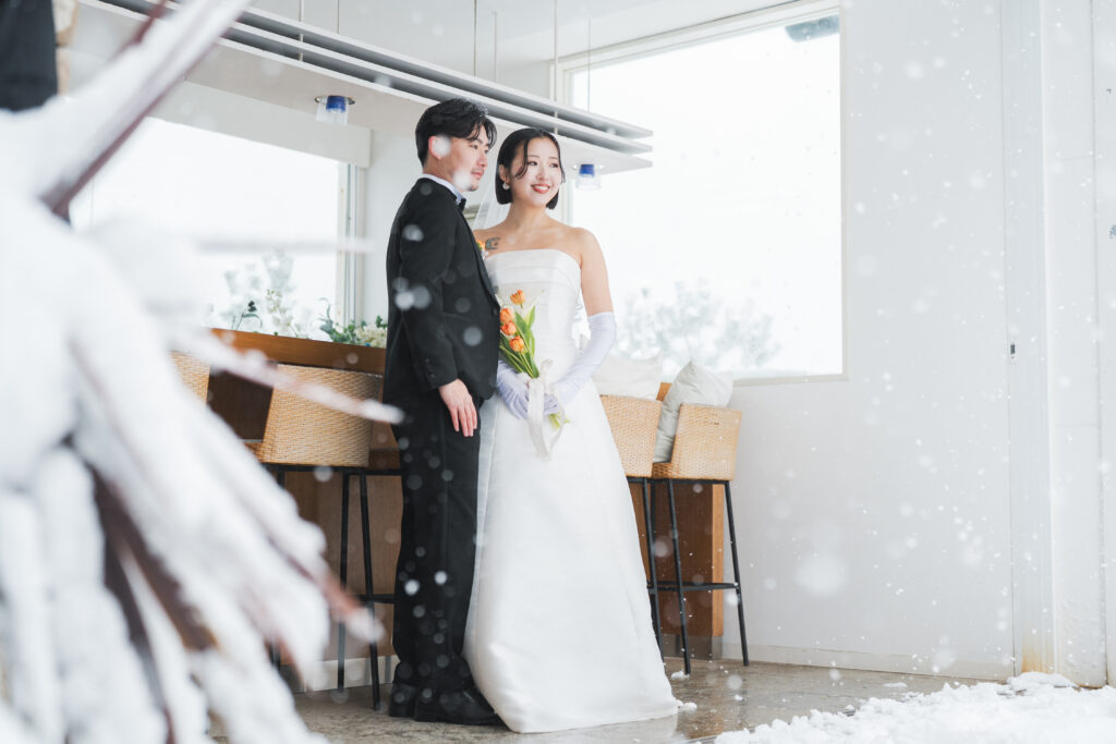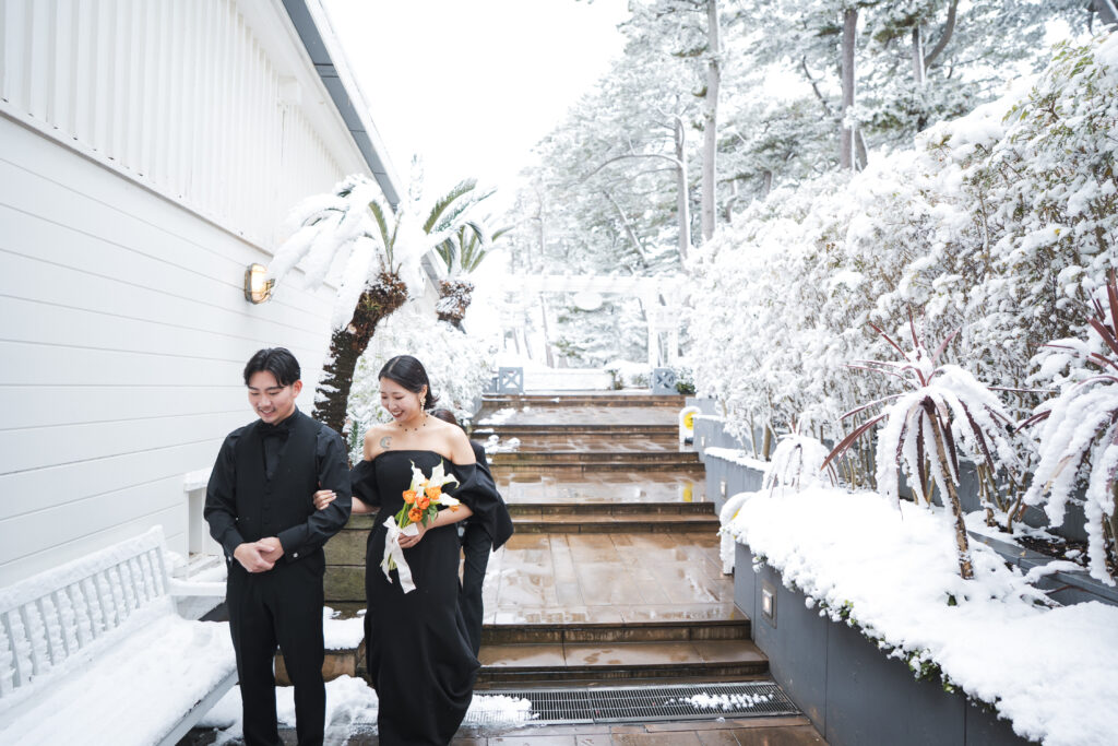 海に面する真っ白で幻想的なチャペルで、撮影タイムを楽しまれました。