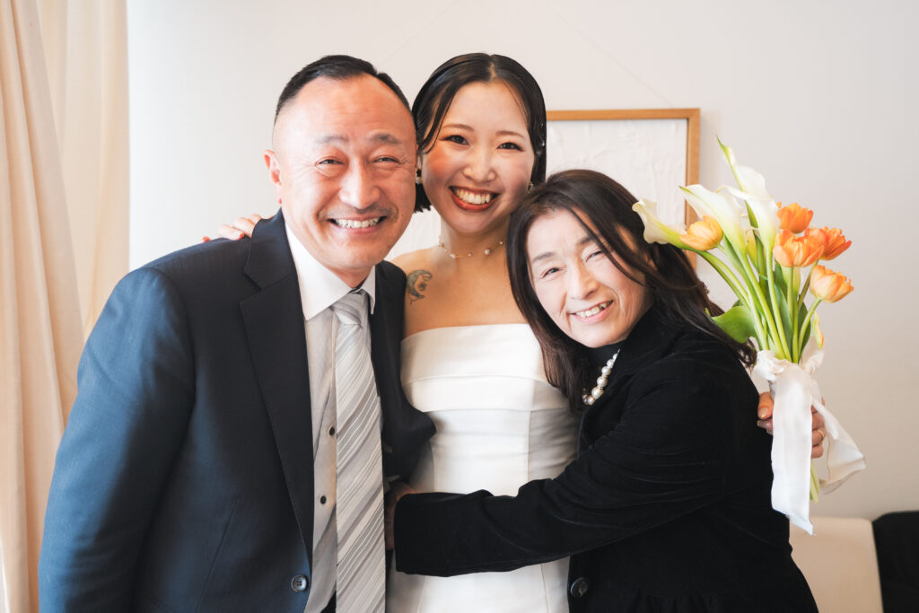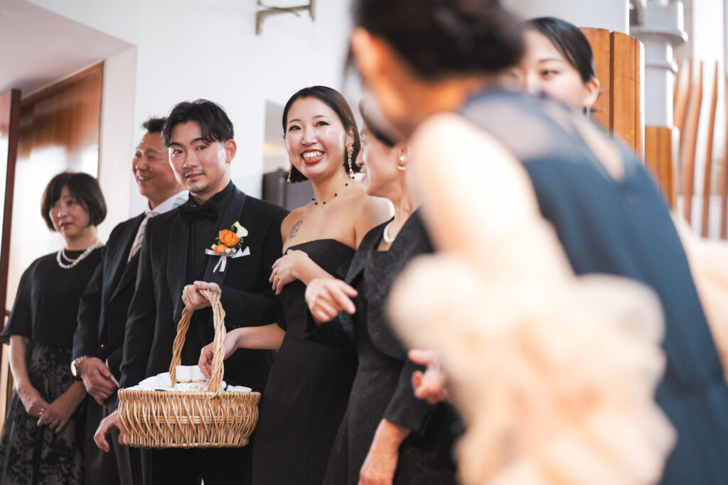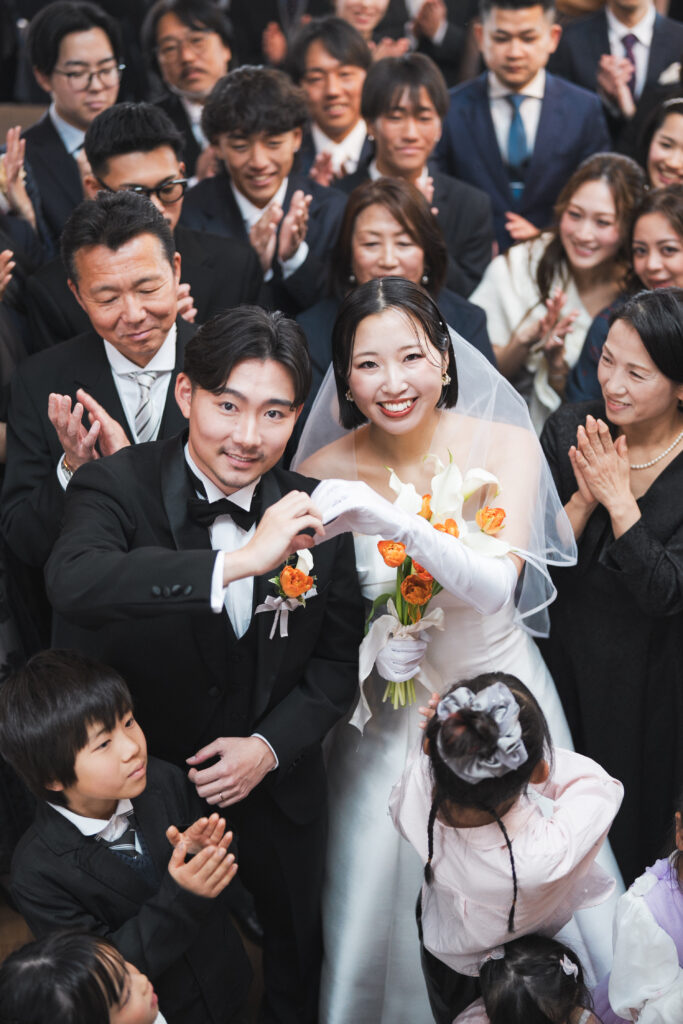 ゲストのみなさまに囲まれ、温かな愛につつまれた挙式となりました。