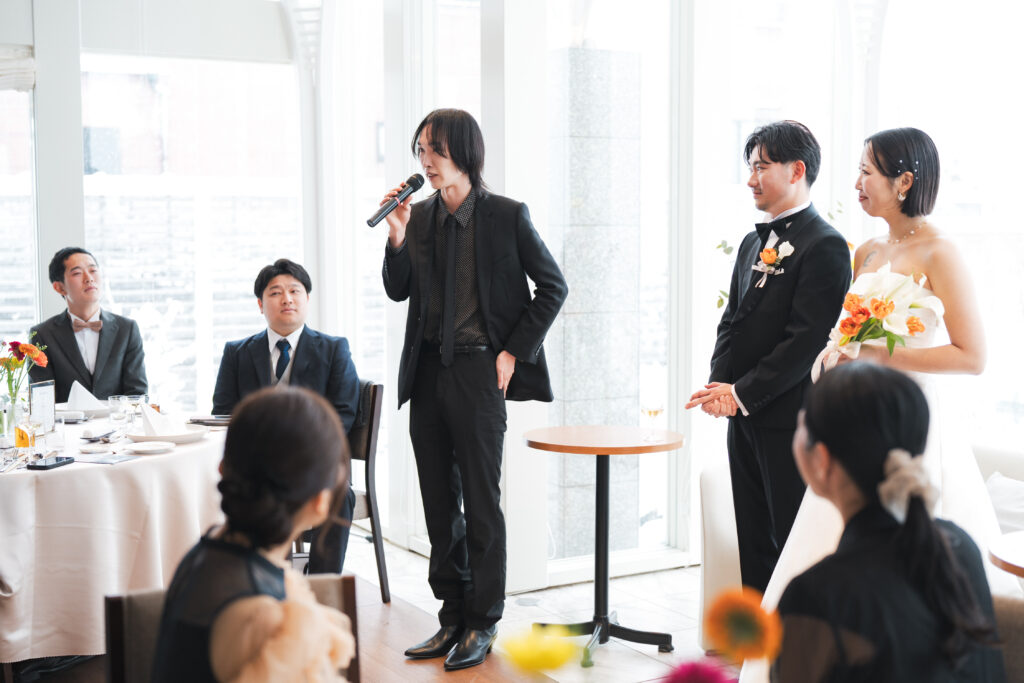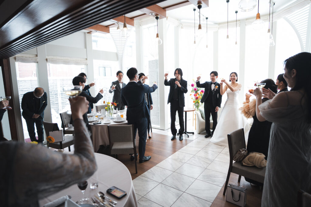 いよいよパーティのスタート。乾杯の音頭は、新郎様の高校時代からのご友人様に行っていただきました。